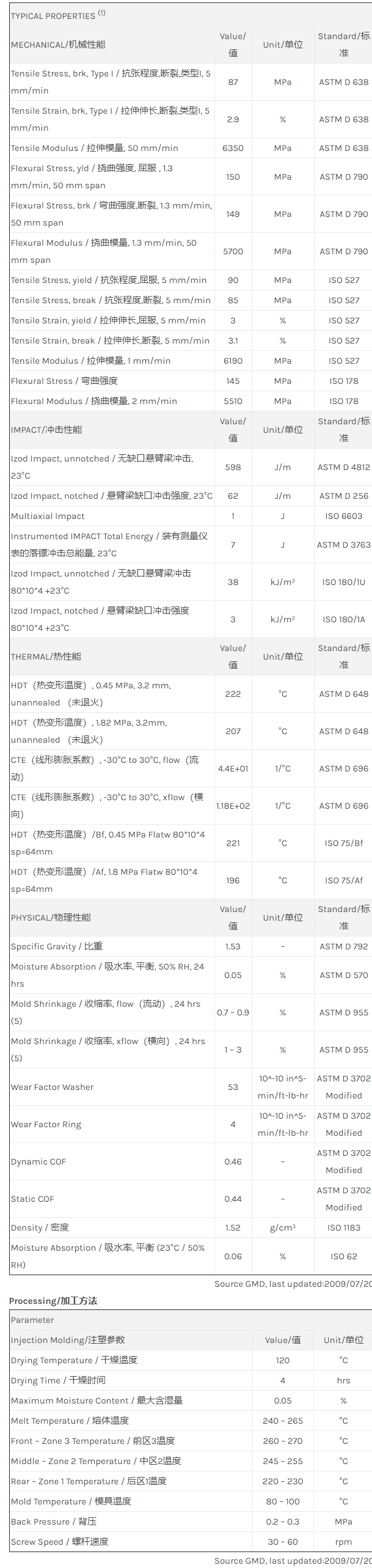 “肇庆LNP LUBRICOMP WFL33是一种聚丁烯对苯二甲酸酯(PBT)产品,含有的填充物为15%玻璃纤维增强材料,可以通过注射成型进行加工。