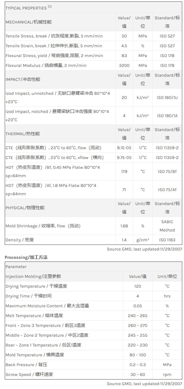 应用范围: 产品描述 LNP Lubricomp WG003物性表 “LNP LUBRICOMP WG003是一种聚丁烯对苯二甲酸酯(PBT)材料,加工方式为:注射成型。 LNP LUBRICOMP WG003的主要特性有: 通过ROHS认证 润滑” LNP* LUBRICOMP* WG003 is a compound based on Polybutylene Terephalate re