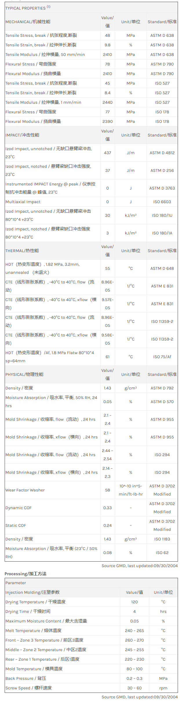 “肇庆LNP LUBRICOMP WL004是一种聚丁烯对苯二甲酸酯(PBT)产品,可以通过注射成型进行加工。