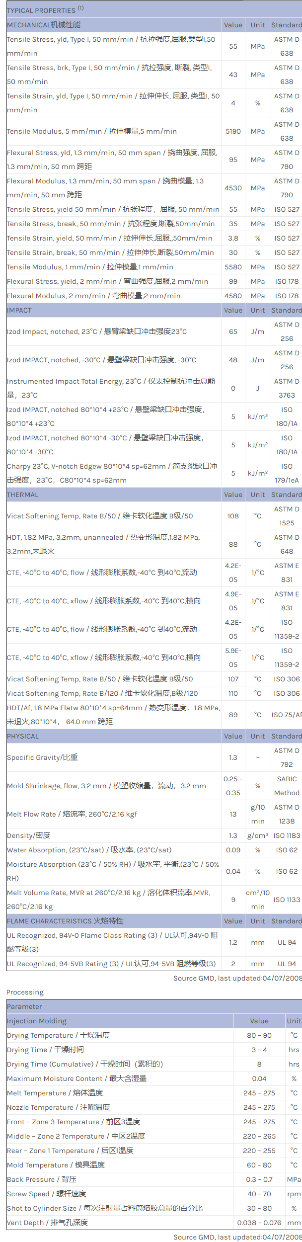 应用范围:产品描述CYCOLOY PC/ABS NX07353物性表Cycoloy NX07353 resin是一种聚碳酸酯+丙烯腈丁二烯苯乙烯(PC+ABS)材料,含有的填充物为矿物填料,加工方式为:注射成型。Cycoloy NX07353 resin的主要特性有:阻燃/额定火焰 、Flame Retardant