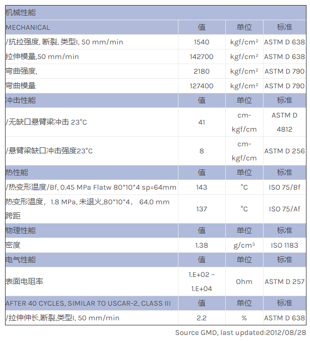 应用范围:产品描述LNP LUBRICOMP DEL34E物性表聚碳酸酯,碳纤维增强材料,LNP LUBRICOMP DEL34 is a compound based on Polycarbonate resin containing PTFE, Carbon Fiber. Added features of this material include: Electrically Conductive.