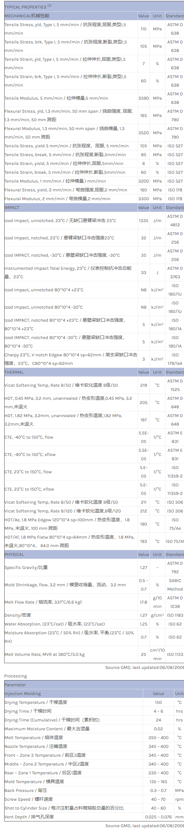 应用范围:产品描述ULTEM PEI 1010A物性表Transparent, high flow Polyetherimide (Tg 217C). ECO Conforming.