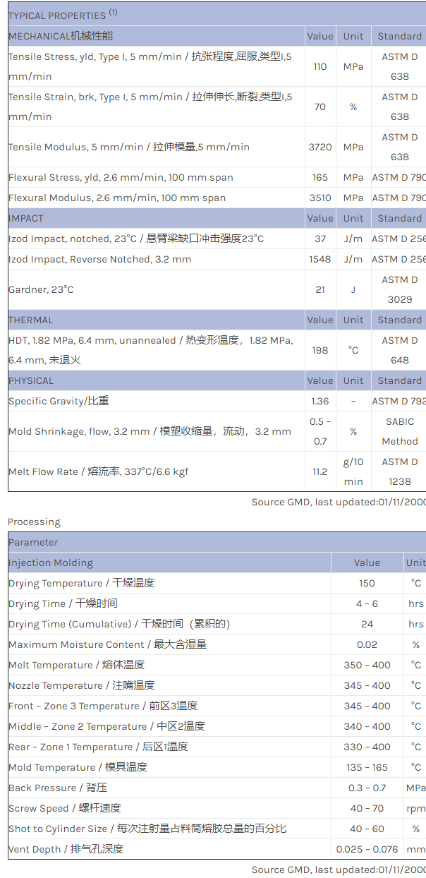 应用范围:产品描述ULTEM PEI 1100R物性表PEI 树脂。ULTEM 1100的脱模剂牌号,颜料含量超过 5%。