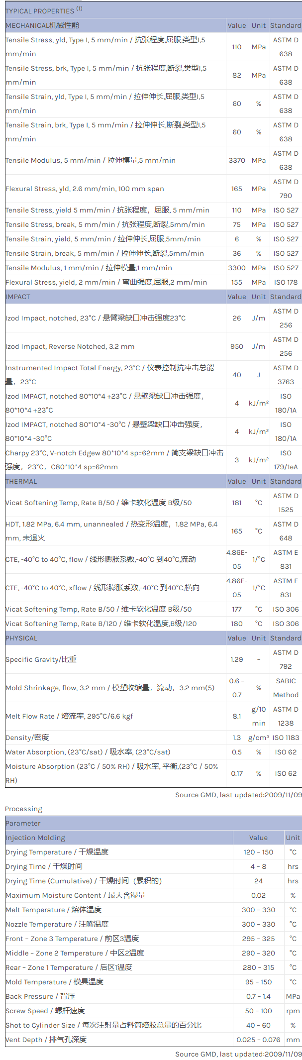 应用范围:产品描述ULTEM PEI DU319物性表Ultem DU319 resin是一种聚酯酰亚胺(PEI)产品,它可以通过注射成型进行加工。典型应用领域为:食品接触应用。特性包括:环保/绿色可接触食品相关色号:DU319-1000