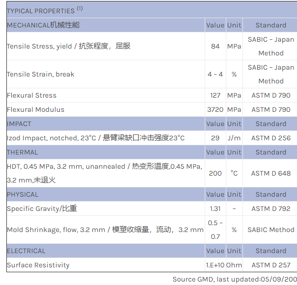 应用范围:产品描述ULTEM PEI JD7904物性表