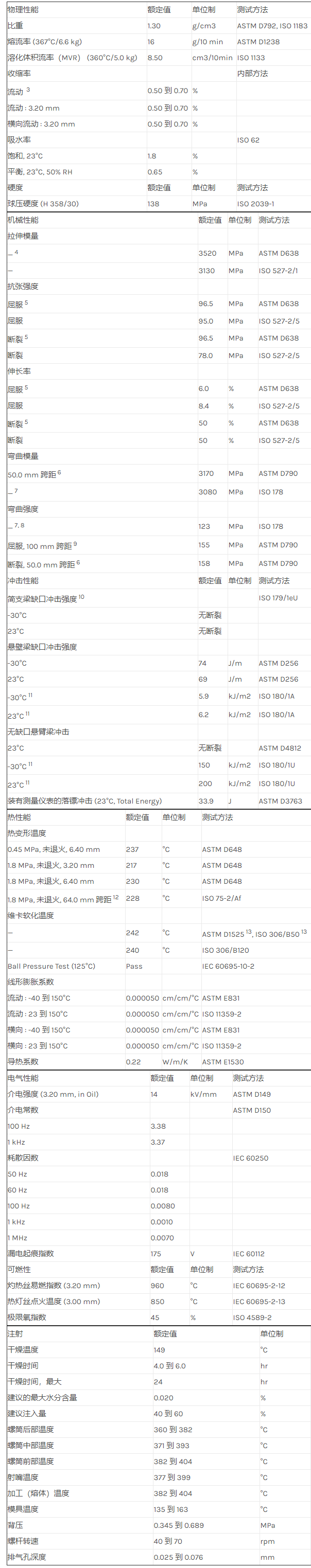 应用范围:产品描述Ultem PEI VH1003M物性表