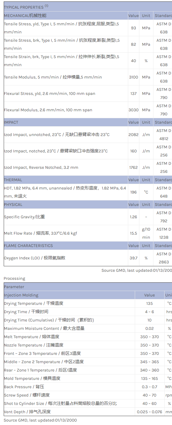 应用范围:产品描述ULTEM PEI HTX1010F物性表高抗冲击PEI。耐高温/抗冲击性。符合食品接触用具与USP ClassVI规范。仅有不透明色。