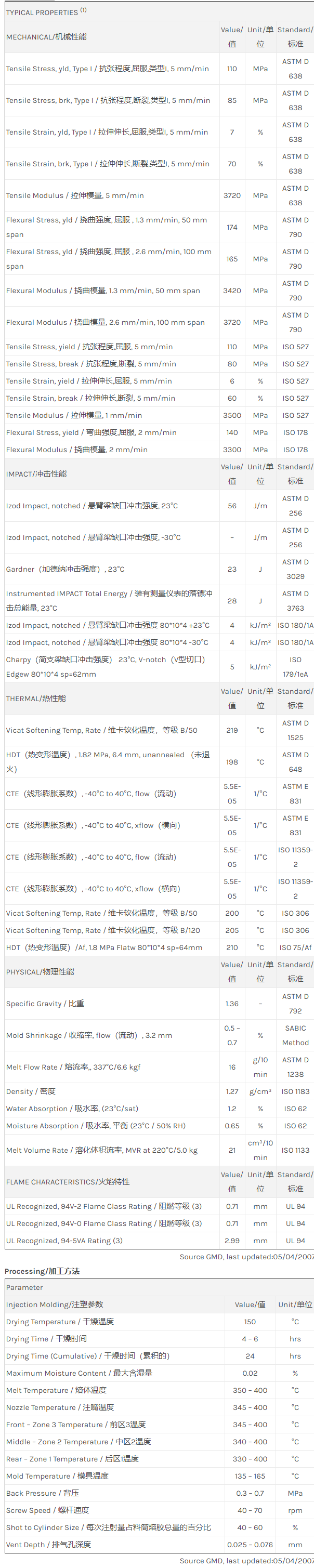 应用范围: 产品描述 ULTEM PEI HU1110物性表 “Ultem HU1110 resin是一种聚酯酰亚胺(PEI)产品,它可以通过注射成型进行加工。 应用领域包括医疗/保健和水管/管道/饮用水。 特性包括: 阻燃/额定火焰 具可灭菌性 高流动性 环保/绿色 可接触食品” Enhanced flow Polyetherimide (Tg 217C). ECO Conformi