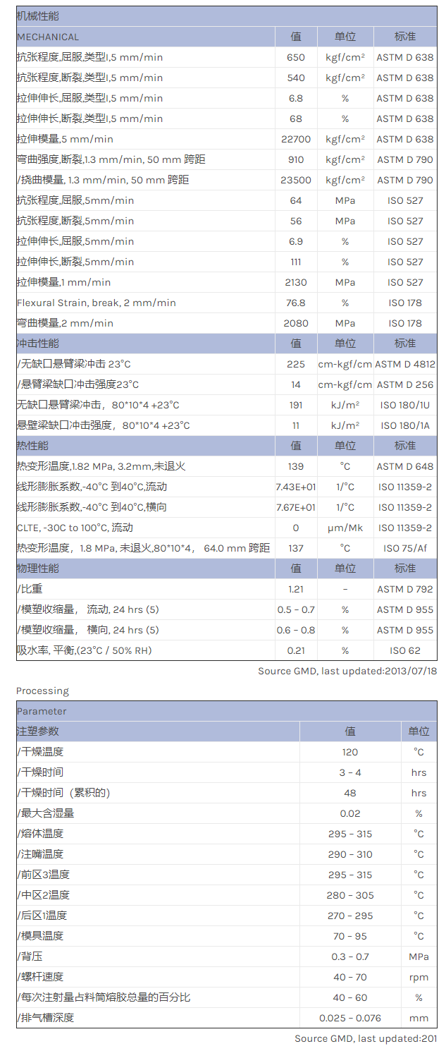 应用范围: 产品描述 LNP LUBRICOMP DX09407H物性表 聚碳酸酯专有填料,LNP LUBRICOMP DX09407H is a compound based on High Heat Polycarbonate containing proprietary fillers. Added features of this grade are: Wear Resistant, Heal
