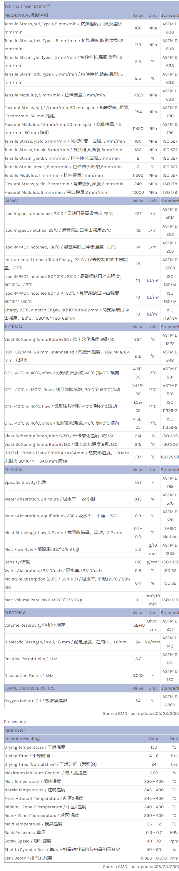 40% Glass fiber filled, enhanced flow Polyetherimide (Tg 217C). ECO Conforming. For medical devices and pharmaceutical applications.Healthcare management of change, biocompatible (ISO 10993 or USP Class VI), food contact compliant.