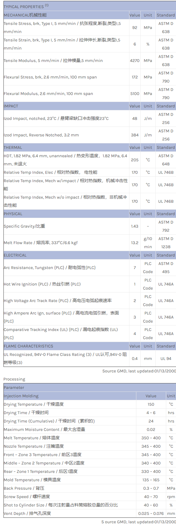 应用范围:产品描述ULTEM PEI 2212物性表20% 研磨玻璃增强,低粘度。MPCB的应用。尺寸稳定,各项异性少,易于流动。