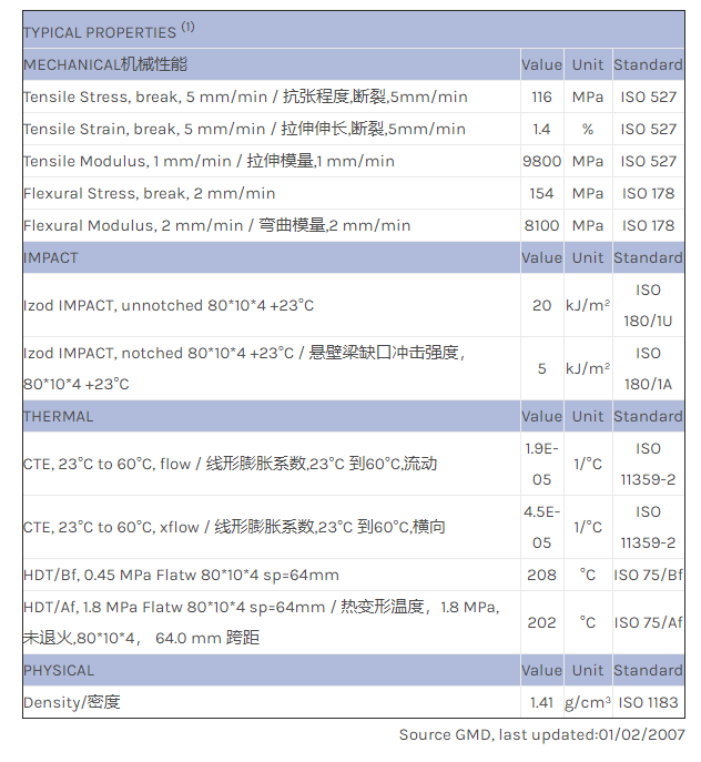 应用范围:产品描述LNP LUBRICOMP EBG物性表LNP* Lubricomp* EBG is a compound based on Polyetherimide resin containing Carbon Fiber, Proprietary Lubricant. Added features of this material include: Electrically Conductive