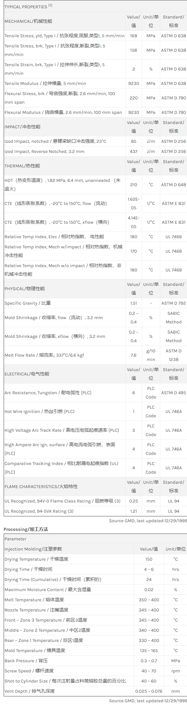 30% Glass fiber filled, enhanced flow Polyetherimide (Tg 217C). ECO Conforming, UL94 V0 and 5VA listing.