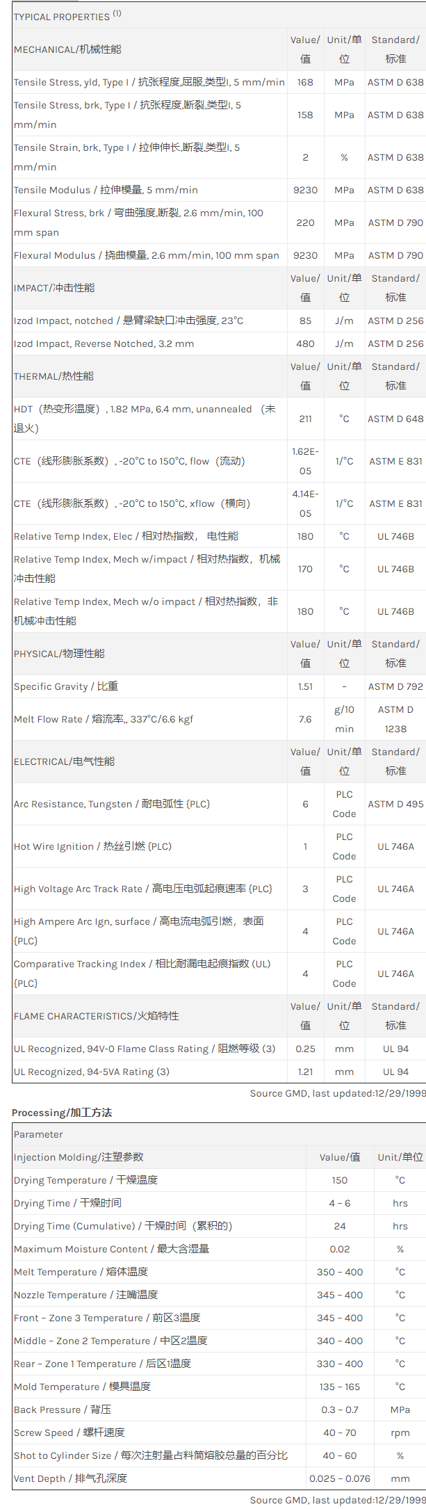 30% 玻纤增强、低粘度PEI 树脂,有脱模剂 。