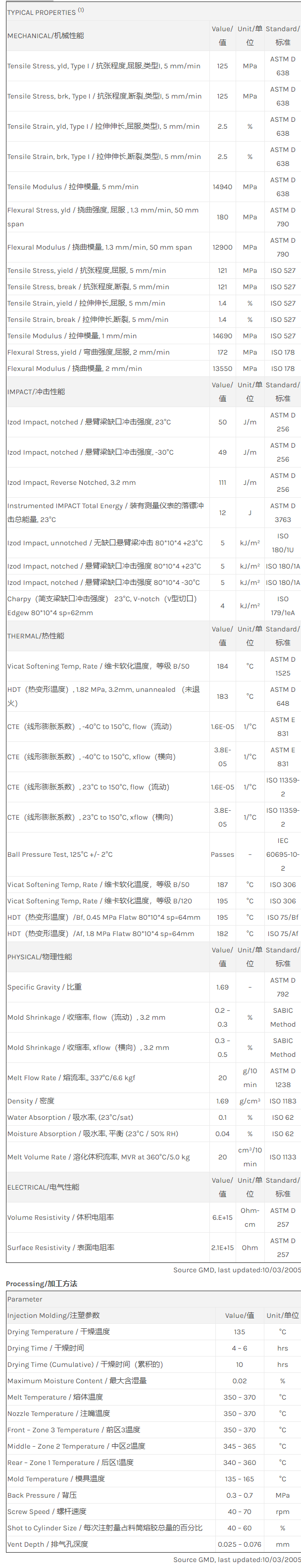 “Ultem ATX3562R resin是一种聚醚酰亚胺+PCE(PEI+PCE)产品,含有的填充物为50% 玻璃\矿物。它可以通过注射成型进行加工。