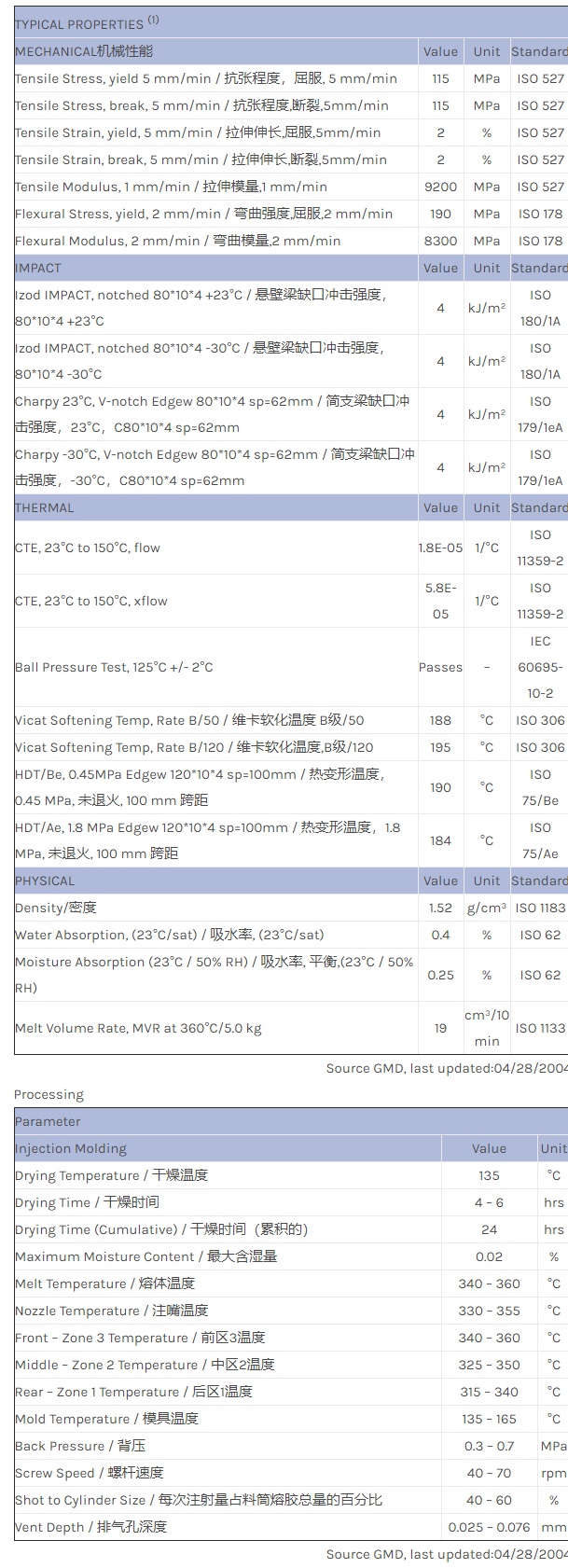 应用范围:产品描述ULTEM PEI LTX931A物性表Post-industrial recycle based, 30% glass fiber filled, high flow Polyetherimide blend. ECO Conforming.