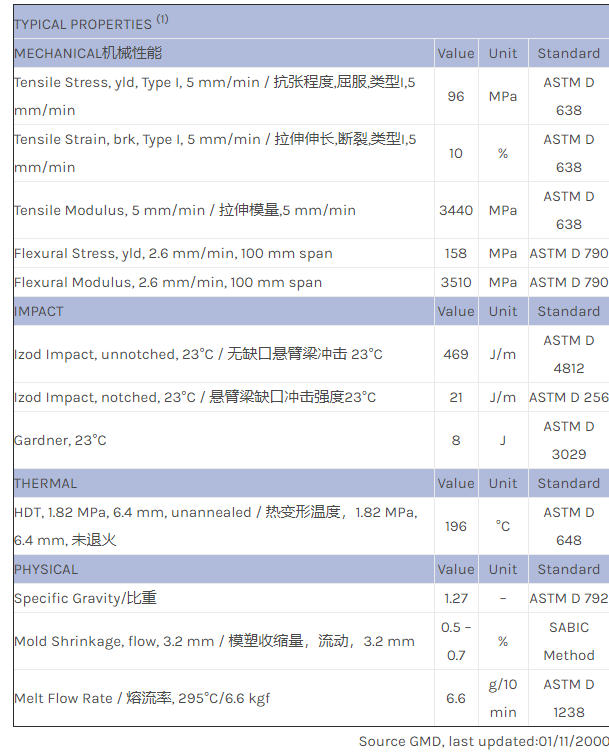 应用范围:产品描述ULTEM PEI 1040A物性表Transparent, high flow Polyetherimide (Tg 217C). ECO Conforming.