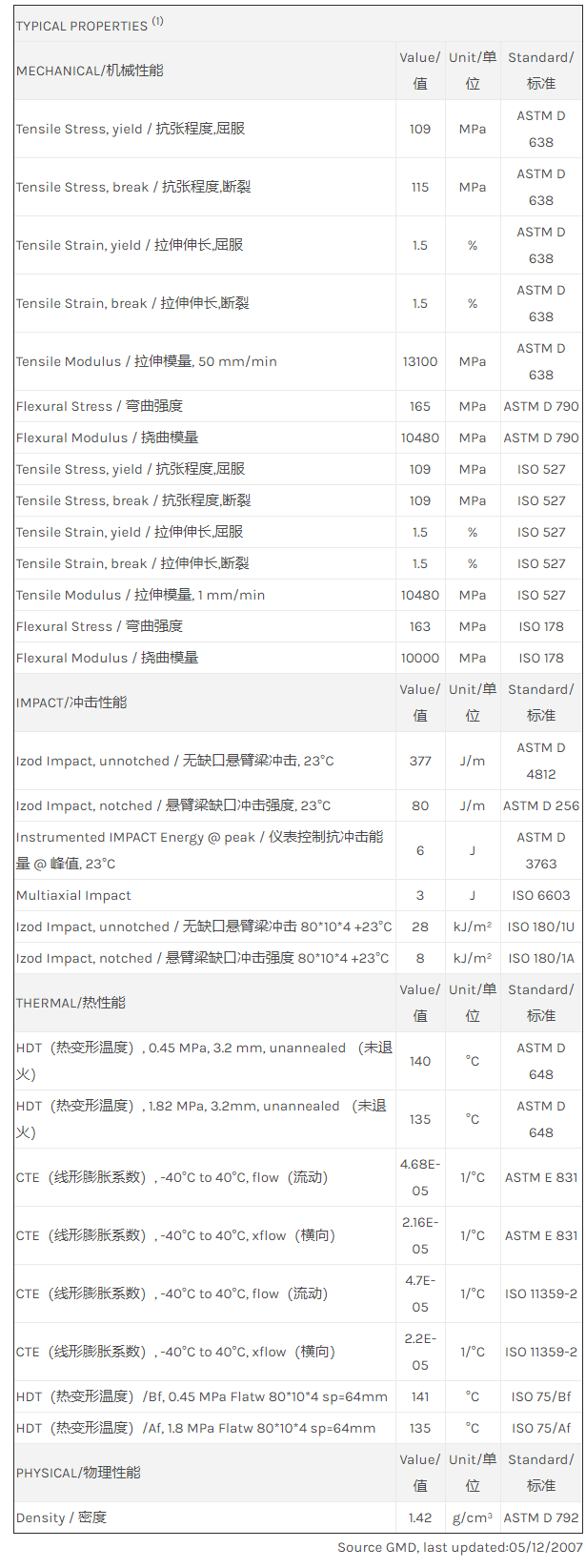 应用范围: 产品描述 LNP Lubricomp ZFG26物性表 “LNP LUBRICOMP ZFG26是一种聚苯醚+PS(PPE+PS)产品,含有的填充物为30%玻璃纤维增强材料,可以通过注射成型进行加工。 特性包括: 耐磨 润滑” LNP* Lubricomp* ZFG26 is a compound based on PPE+PS Blend resin containing Gla