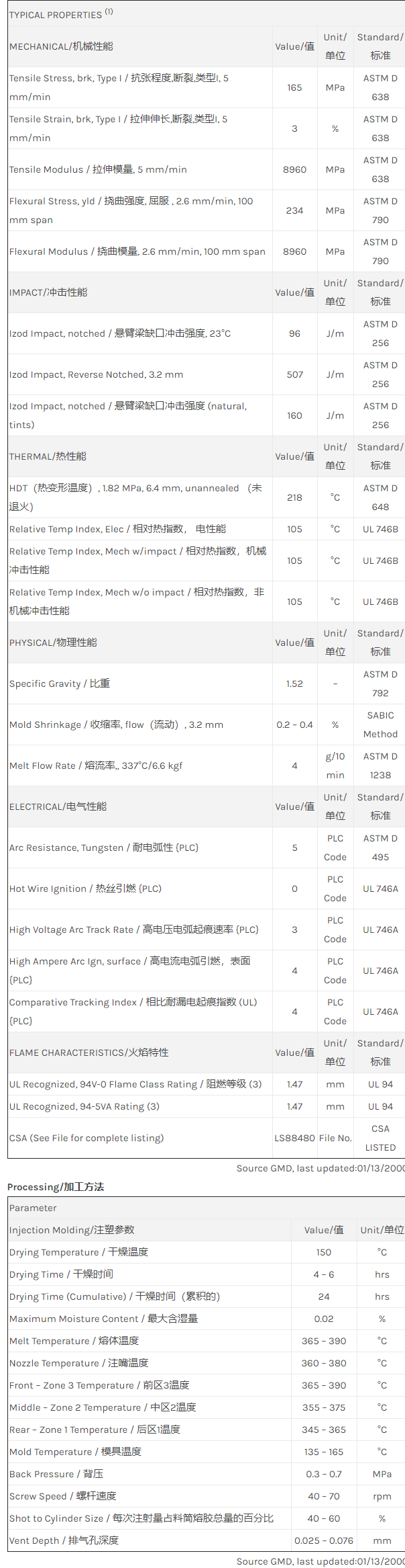 应用范围: 产品描述 ULTEM PEI CRS5311物性表 30% 玻纤增强、低粘度共聚物。改良的耐化学剂性,耐强酸、碱、芳香族环烃、甲酮。 30% Glass fiber filled, enhanced flow Polyetherimide copolymer (Tg 225C) with enhanced chemical resistance to strong acids, base