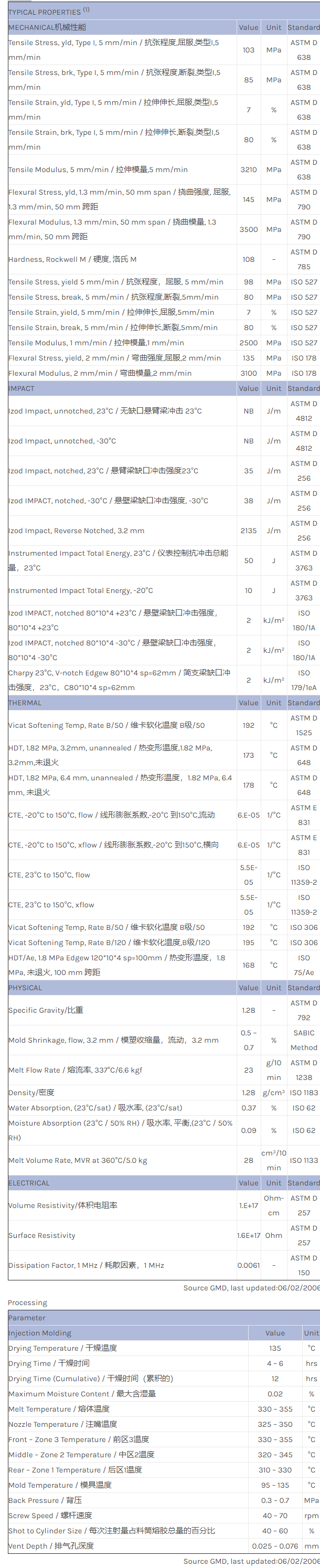 应用范围:产品描述ULTEM PEI EXUM0167物性表Ultem EXUM0167 resin是一种聚酯酰亚胺(PEI)产品,它可以通过注射成型进行加工。特性包括:环保/绿色柔软脱模剂
