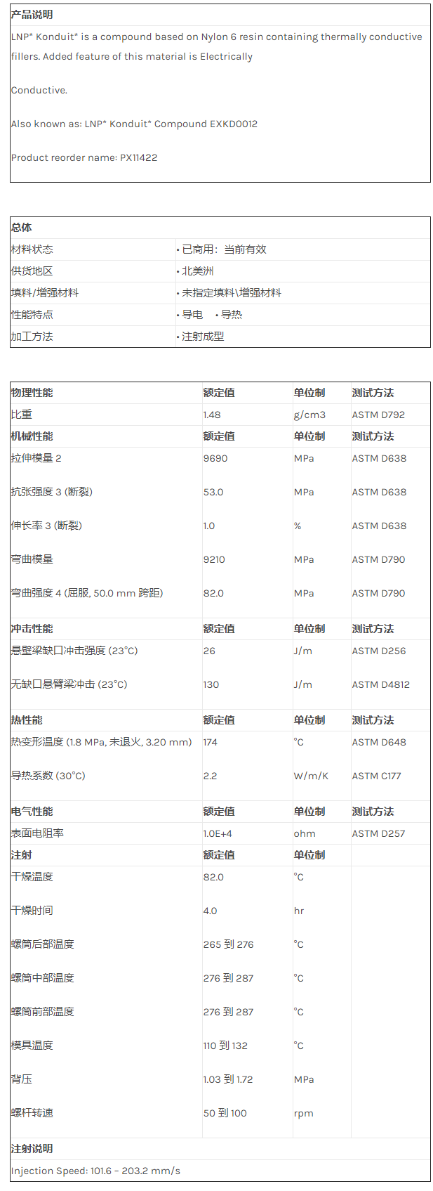应用范围:产品描述LNP KONDUIT PX11422物性表