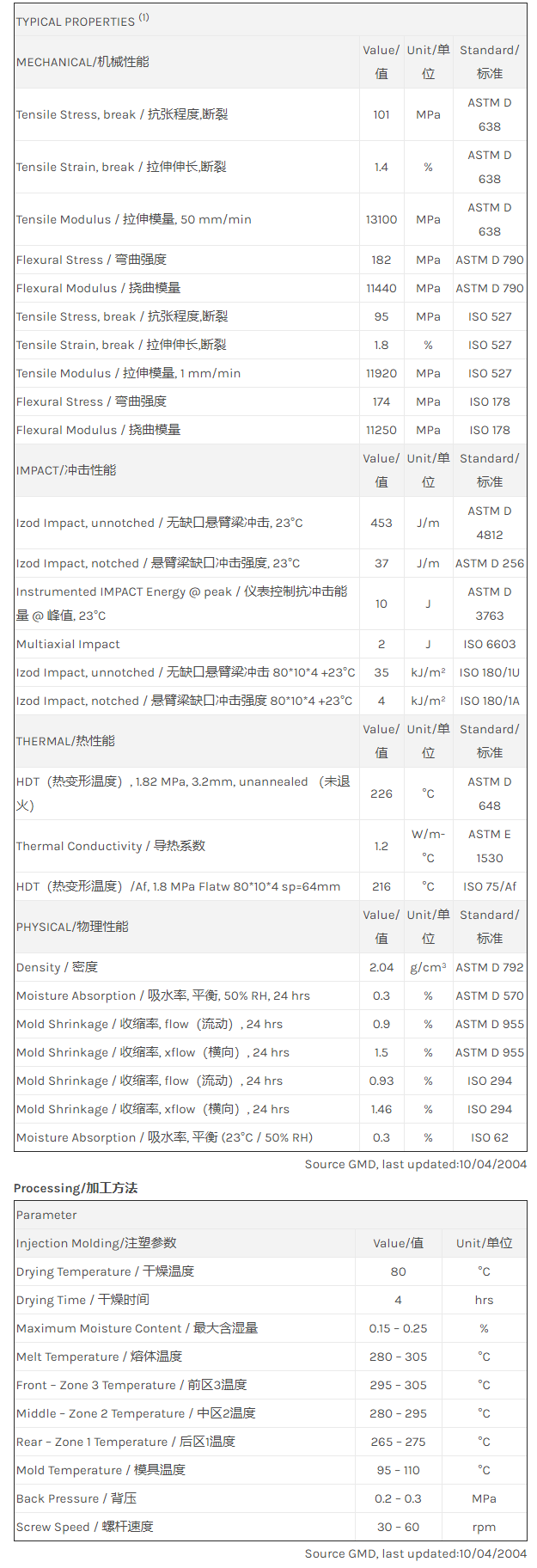 应用范围: 产品描述 LNP Konduit ITF2B物性表 “LNP KONDUIT ITF2B是一种聚酰胺612(尼龙6/12)材料,含有的填充物为玻璃纤维增强材料和专有填料,加工方式为:注射成型。 LNP KONDUIT ITF2B的主要特性为:传导性。” LNP* Konduit* RTF2B is a compound based on Nylon 66 resin containin