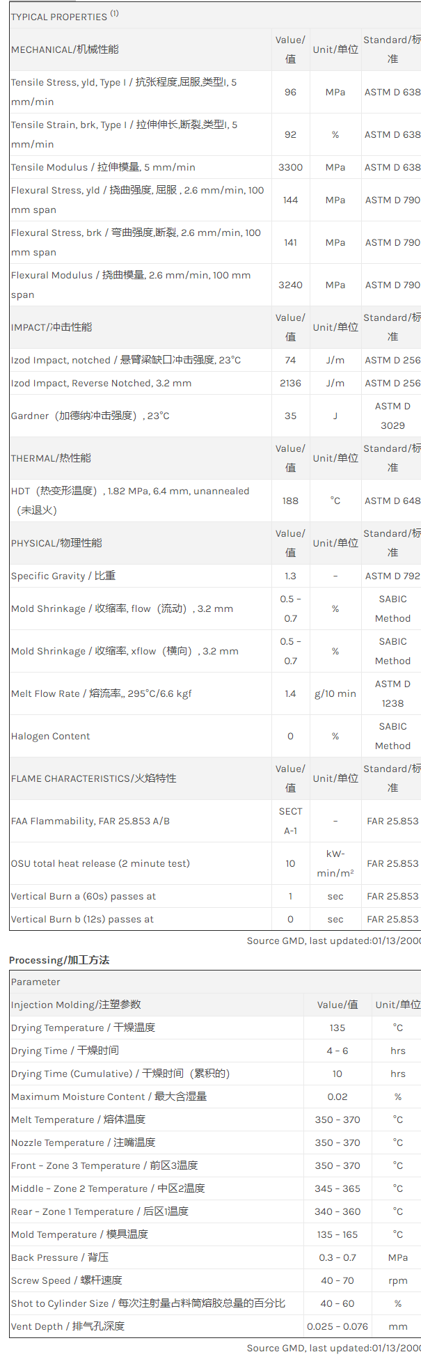 Standard/标准 flow Polyetherimide Blend. Meets FAR 25.853 and OSU 65/65 with low toxicity, smoke, and flame evolution. ECO Conforming.