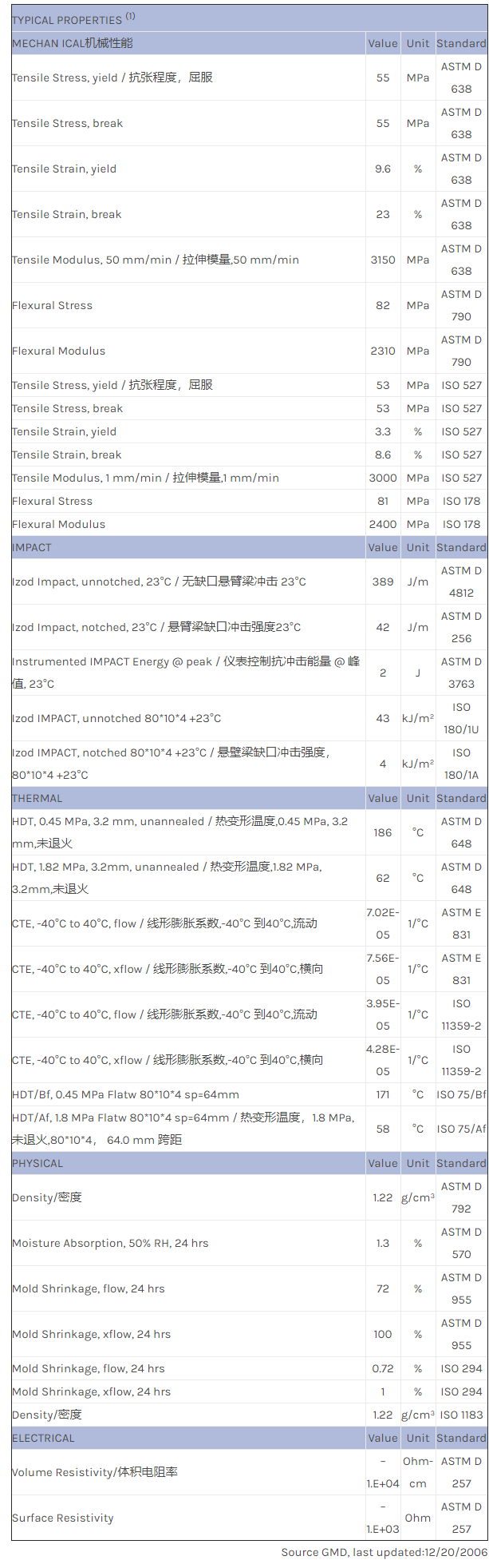 应用范围:产品描述LNP FARADEX PS003E物性表LNP FARADEX PS003E是一种聚酰胺6(尼龙6)材料,含有的填充物为不锈钢纤维。LNP FARADEX PS003E的主要特性有:传导性电磁屏蔽(EMI)射频屏蔽 (RFI)
