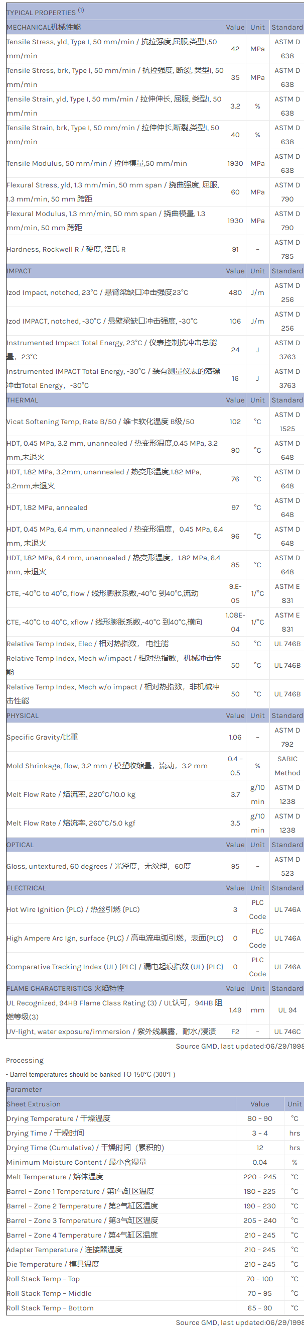 应用范围:产品描述Geloy ASA CR7010物性表CR7010是一款ASA共聚物。主要应用:片材挤塑。特点:高抗冲击性能、耐天候capstock.