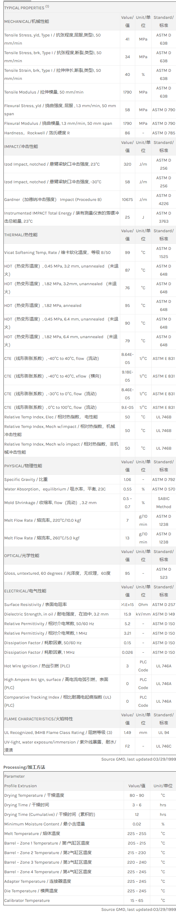 应用范围: 产品描述 Geloy ASA CR7020物性表 “GELOY CR7020是一种丙烯腈-苯乙烯-丙烯酸酯(ASA)产品,可以通过型材挤出成型进行加工。 GELOY CR7020的应用领域包括薄板和户外应用。 特性包括: 阻燃/额定火焰 共聚物 耐冲击 GELOY CR7020是一款耐候性好ASA聚化物。型材、片材共挤塑能力优于ABS。具有优异的耐天候性,良好的流动性、美观、高