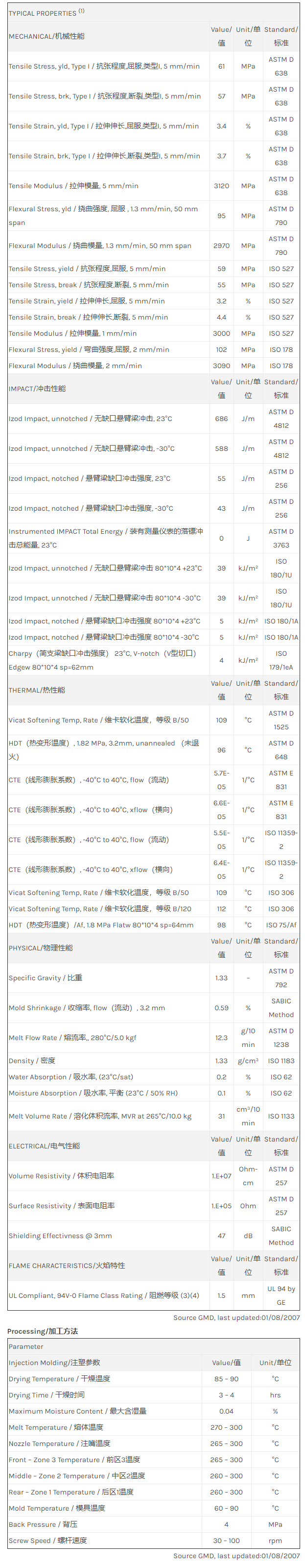 应用范围: 产品描述 LNP faradex NS0031物性表 “LNP FARADEX NS0031是一种聚碳酸酯+丙烯腈丁二烯苯乙烯(PC+ABS)材料,含有的填充物为不锈钢纤维,加工方式为:注射成型。 LNP FARADEX NS0031的主要特性有: 阻燃/额定火焰 无卤素 Flame Retardant 电磁屏蔽(EMI) 静电保护” 相关颜色色号:NS0031-BK1066