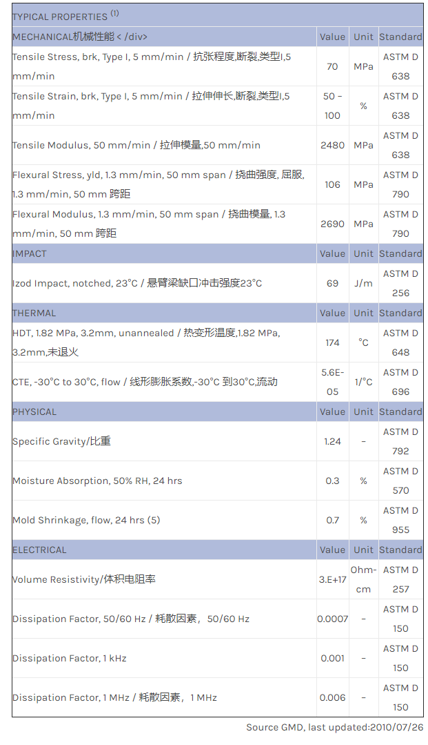 应用范围:产品描述LNP COLORCOMP G1000物性表LNP COLORCOMP G1000是一种聚砜(PSU)材料,加工方式为:注射成型。LNP COLORCOMP G1000的主要特性为:通过ROHS认证。