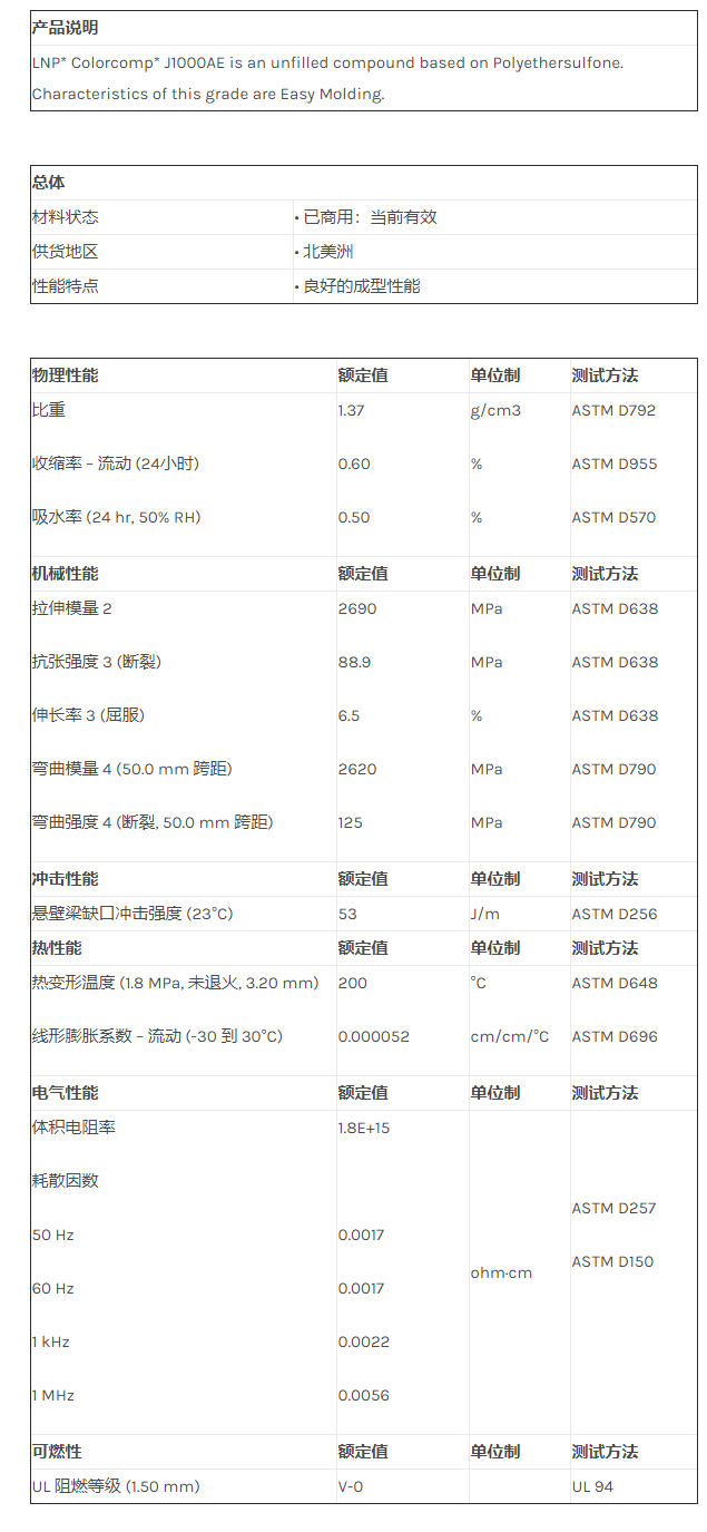 应用范围:产品描述LNP COLORCOMP J1000AE物性表