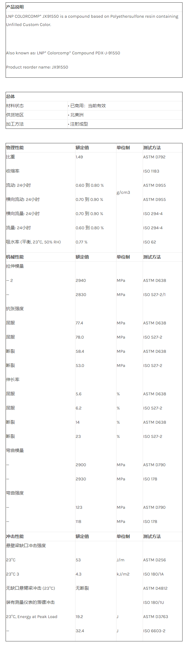 应用范围:产品描述LNP COLORCOMP JX91550物性表