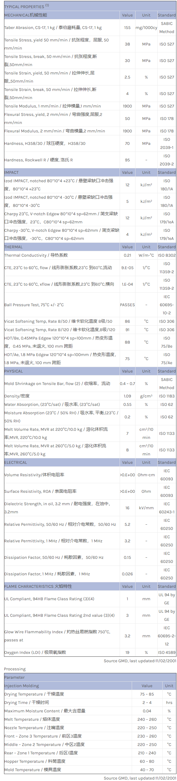 Geloy ASA FXW710ME物性表
