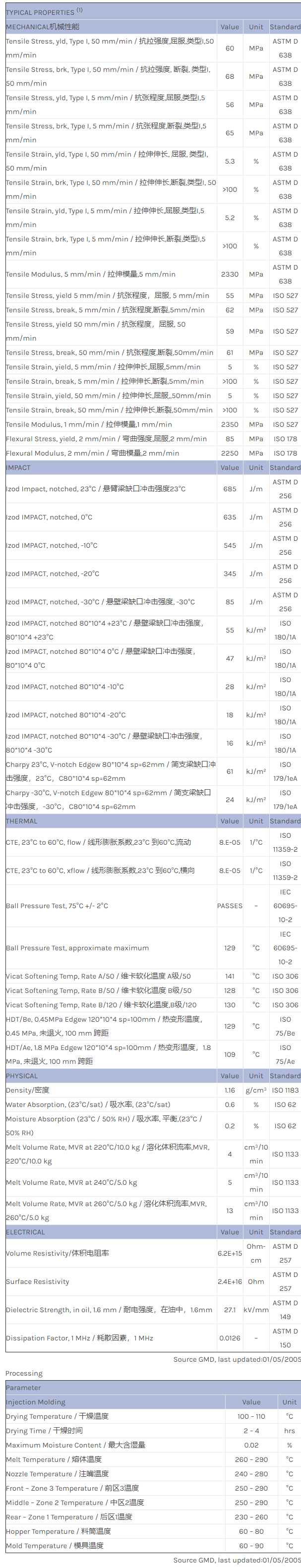 应用范围:产品描述Geloy ASA XTPM309物性表XTPM309 is a modified HRA170 with improved processing stability.Typical properties measured on natural material.