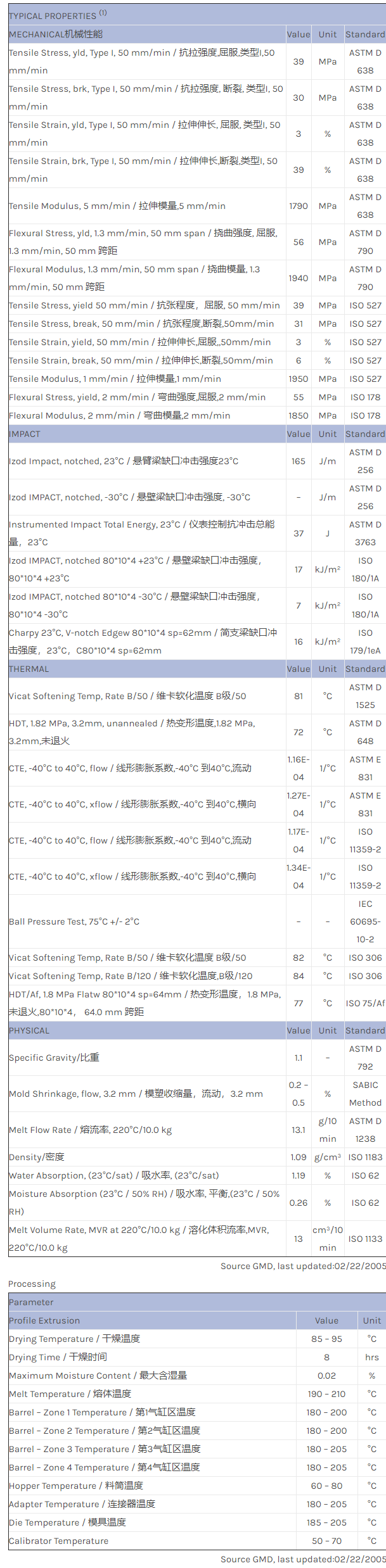 应用范围:产品描述Geloy ASA XTWE270物性表ASA copolymer. Profile/sheet coextrusion over PVC or ABS. Excellent weatherability, good flow/aesthetics and good IMPACT.