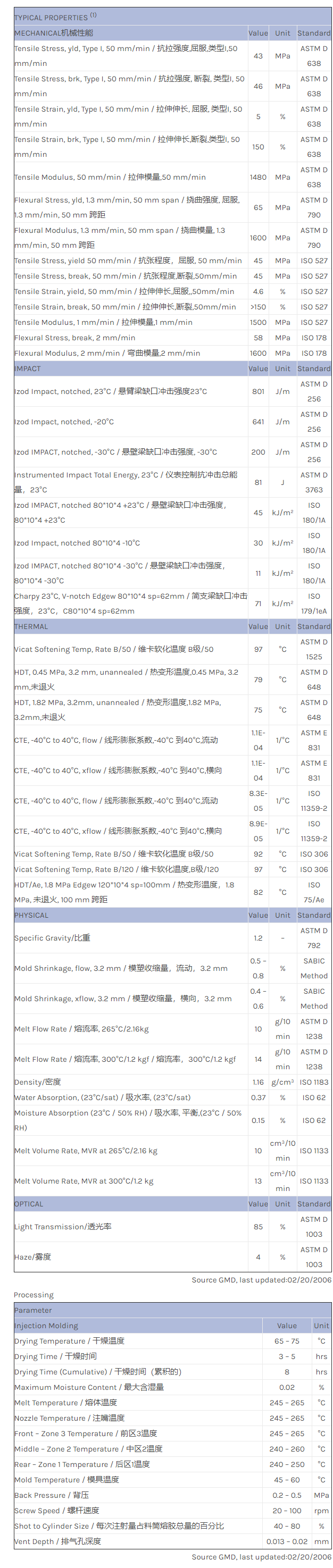 应用范围:产品描述XYLEX PC/PET X8210物性表PC+POLYESTER alloy. Unreinforced, transparent, impact modified for low temperature ductility
