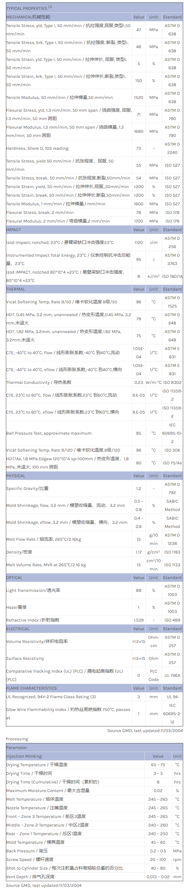 应用范围:产品描述XYLEX PC/PET X8300物性表PC+Polyester, UV Stabilized, Transparent