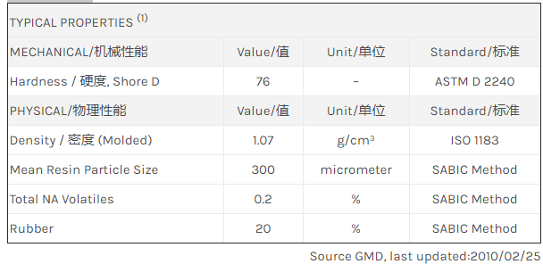 SABIC INP388 is a high heat ASA resin, and is based on alphamethyl styrene acrylontrile butylacrylate styrene (AMS-ASA) and polybutyl arylate rubber.