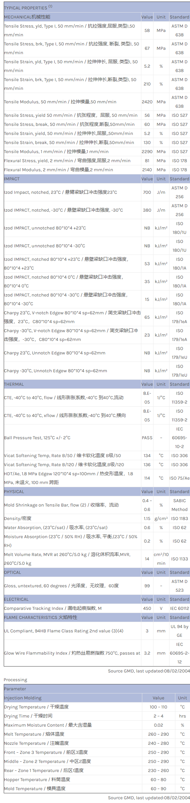 EXGY0010 is a high heat resistant ASA+PC. It shows high IMPACT retention, which can be positioned for various outdoor and indoor applications requiring superior heat aging properties and colour stability.Properties measured on a color containing 7% inorganic pigments