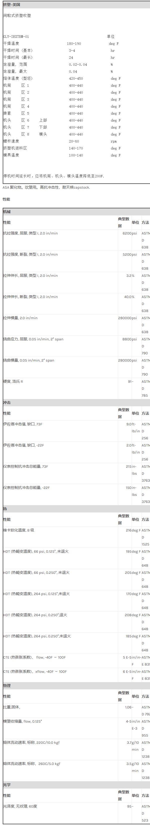 应用范围: 产品描述 Geloy ASA CR7030物性表 ASA 共聚物。吹塑用。高抗冲击性,耐天候capstock. 加工