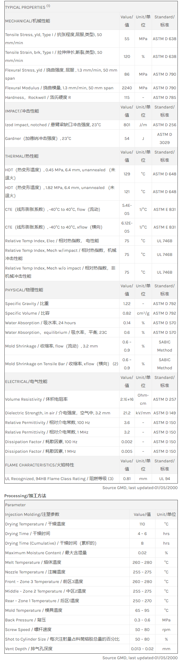 Xenoy PC/PBT/PET 2230物性表