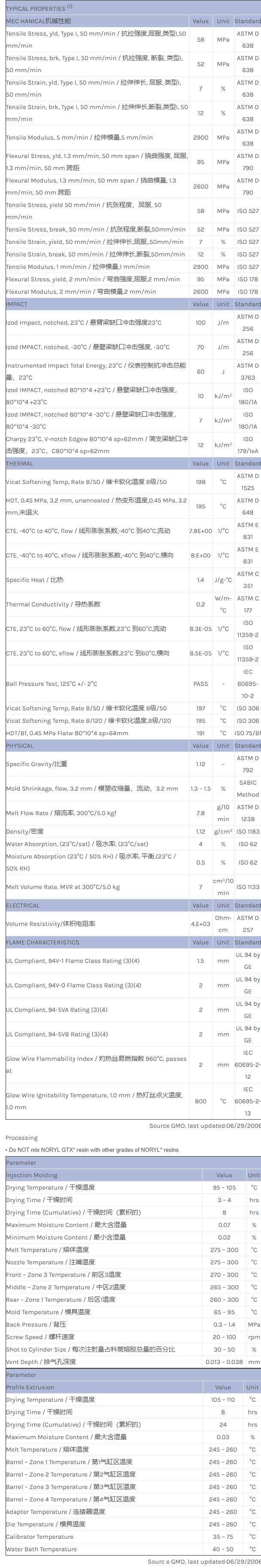 应用范围:产品描述NORYL GTX GTX678物性表Noryl GTX678 resin is a high performance blend of PPE/PA that exhibits an excellent balance on non-halogenated flame retardance, conductivity, ductility, and high-heat resistanc