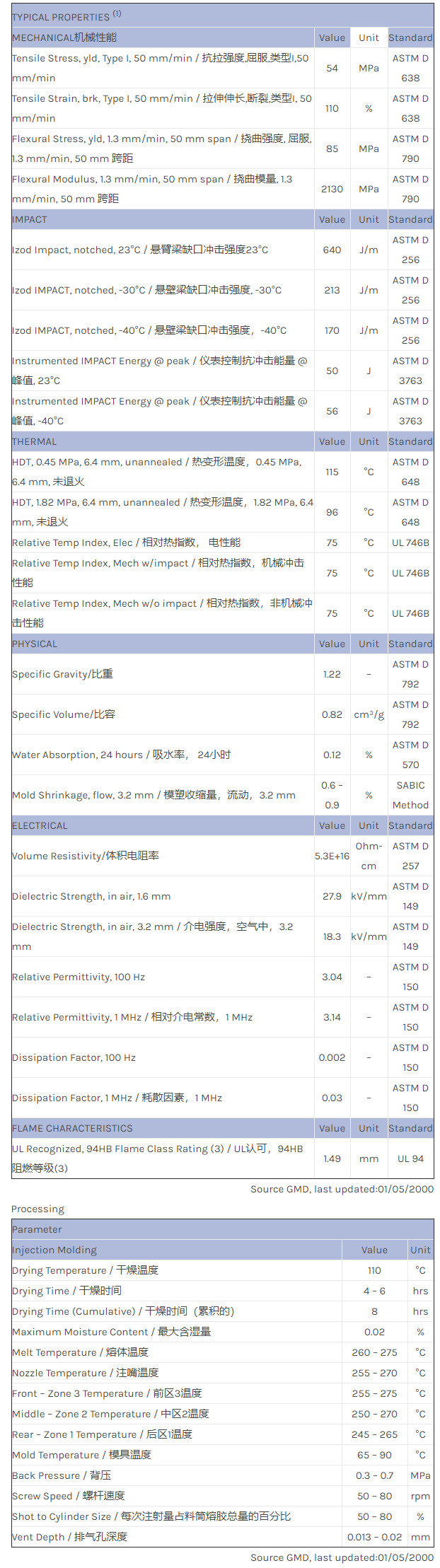应用范围:产品描述XENOY PC/PBT/PET 5230物性表5230是一款未增强PC/PBT合金化聚合物。主要特点:优异的抗冲击性耐化学剂性尺寸稳定性