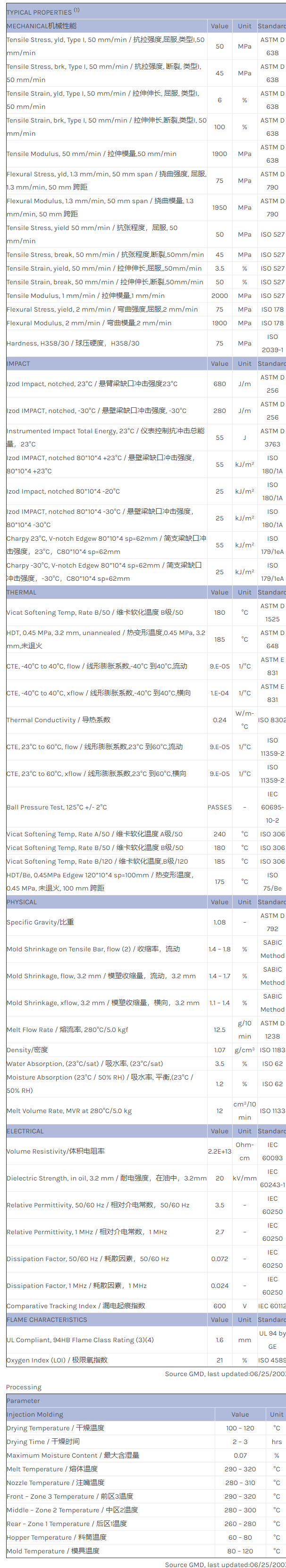 应用范围:产品描述NORYL GTX GTX944物性表NORYL GTX944 is an unfilled GTX grade with improved processability and increased impact performance.