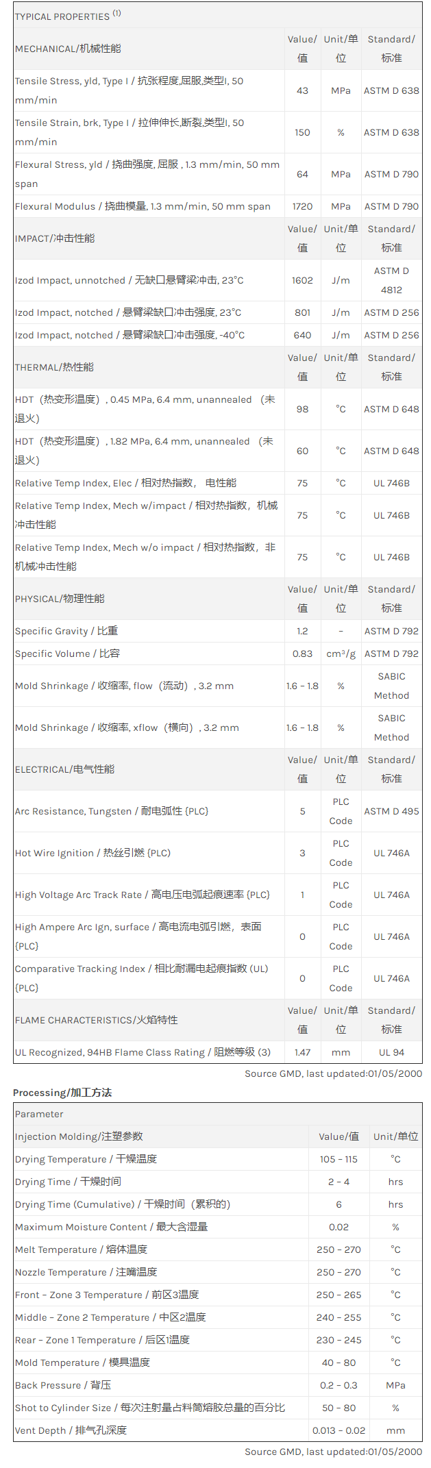 应用范围: Xenoy PC/PBT/PET 6620U物性表 “6620U未增强PC/PBT合金化聚合物。 特点: 显著的低温抗冲击性 耐化学剂性 紫外照射下,机械性能保留性优于6620” 相关颜色色号:6620U-1001、6620U-OR7G006、6620U-BL4G024、6620U-OR5G027、6620U-BK1066 UR, PBT+PC alloy. Improved m