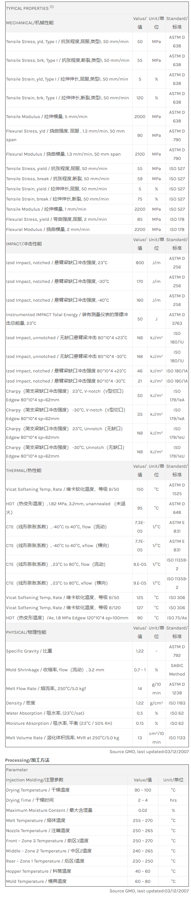 Xenoy PC/PBT/PET CL100物性表