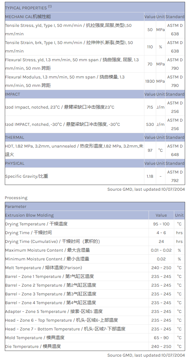 应用范围: 产品描述 XENOY PC/PBT/PET EXXY0061物性表 UV stabilized, high melt strength grade for thermoforming, extrusion or blow molding of automotive large exterior applications. Heat Stabilized, Impact Modified,