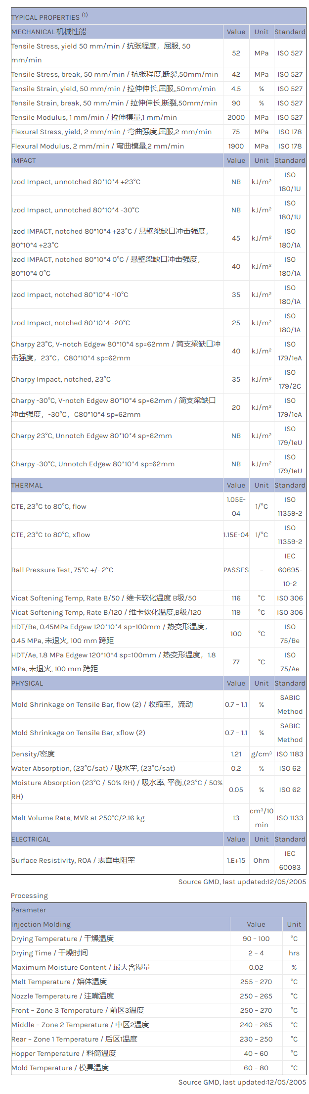 Non dust-attracting version of CL300. PBT+PC, Antistatic, Heat Stabilized, Impact Modified, Opaque,